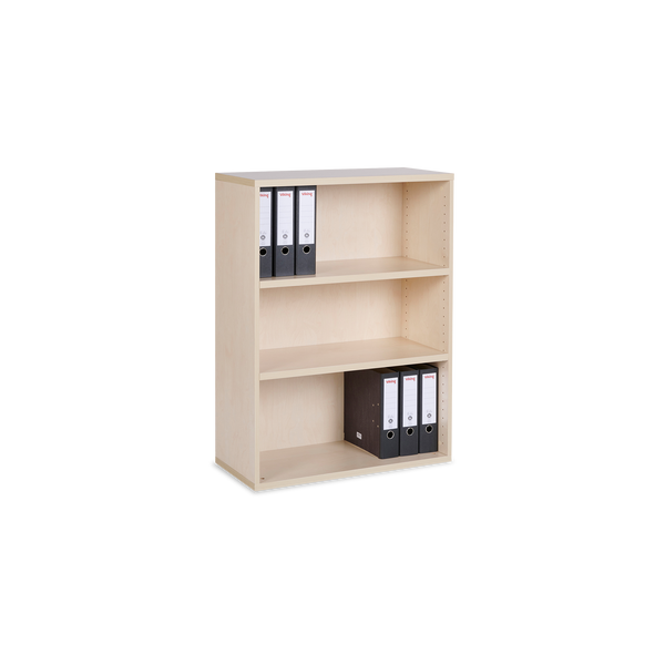 Das Aktenregal aus Holz in Ahorn ist die ideale Lösung, um Ihre Akten und Ordner übersichtlich zu organisieren. Die 18 mm starken Seitenwände sorgen für eine stabile Konstruktion. Das Regal verfügt über drei offene Fächer und bietet mit den Maßen 800 x 375 x 1095 mm (B x T x H) ausreichend Platz für Ihre Dokumente.