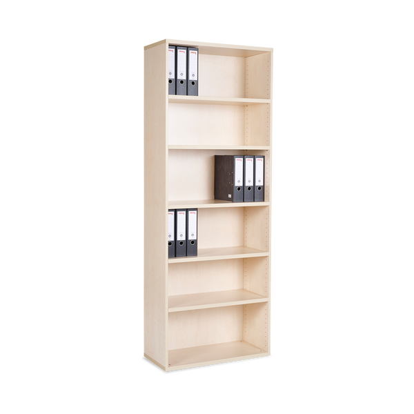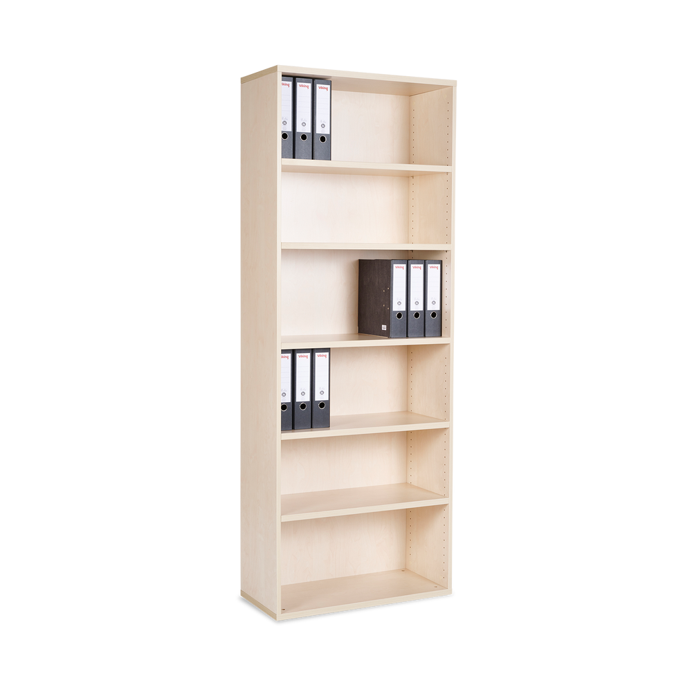 Das Aktenregal aus Holz in Ahorn ist die ideale Lösung, um Ihre Akten und Ordner übersichtlich zu organisieren. Die 18 mm starken Seitenwände sorgen für eine stabile Konstruktion. Das Regal verfügt über sechs offene Fächer und bietet mit den Maßen 800 x 375 x 2150 mm (B x T x H) ausreichend Platz für Ihre Dokumente.