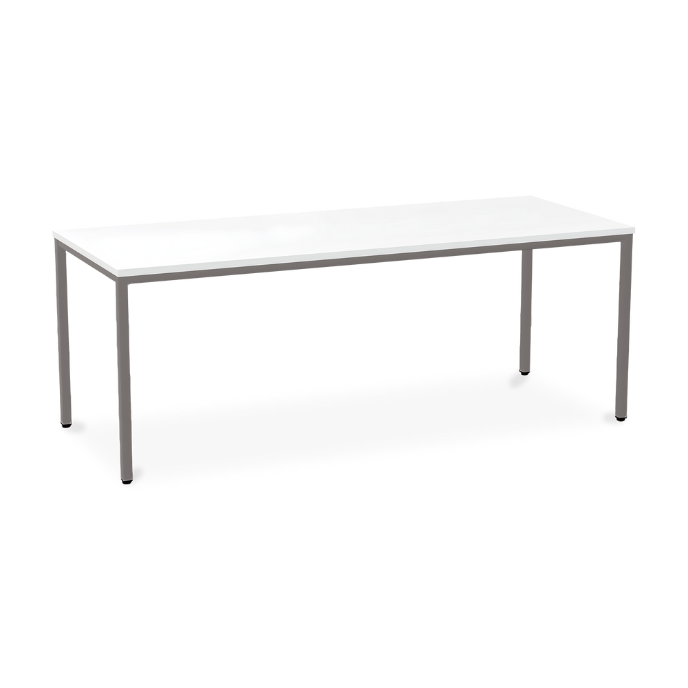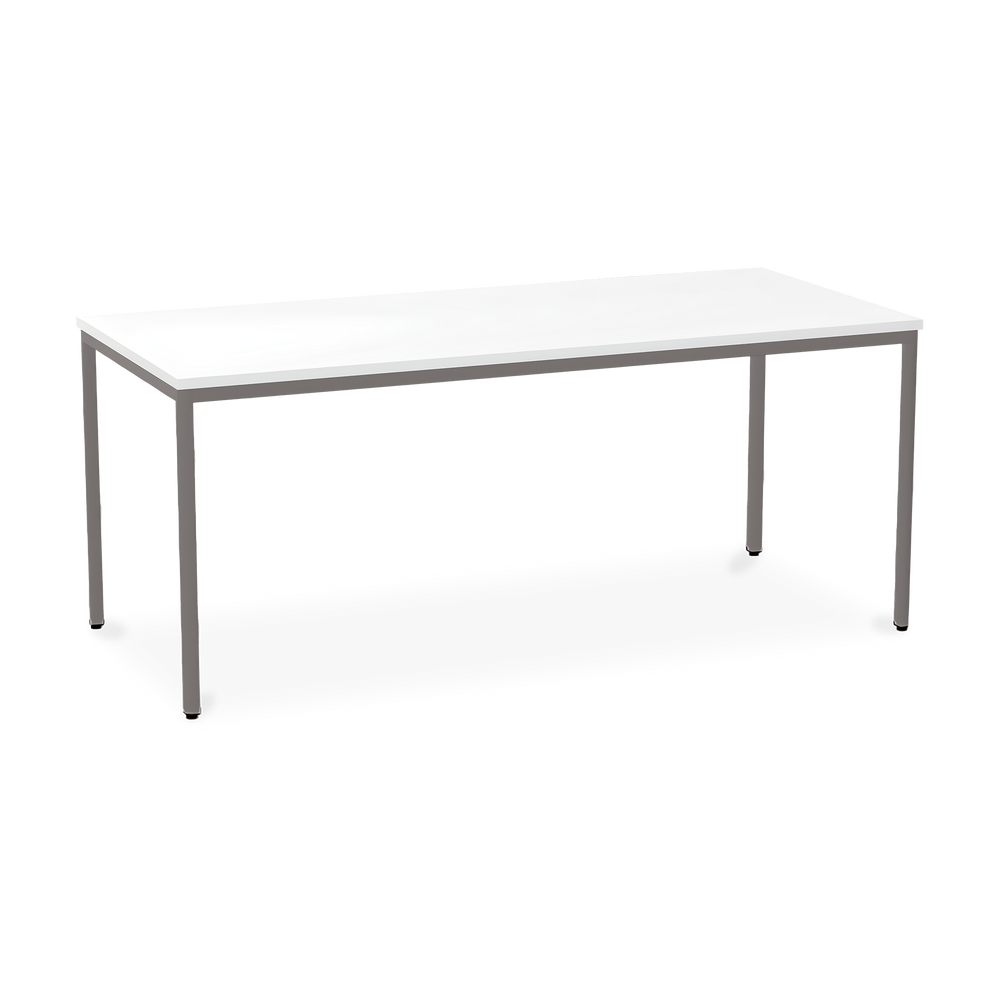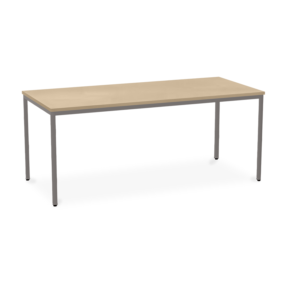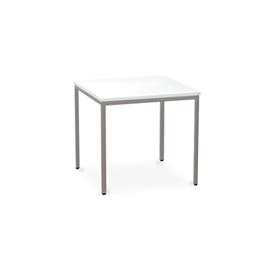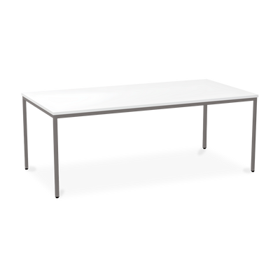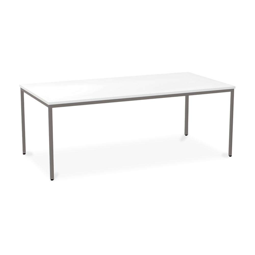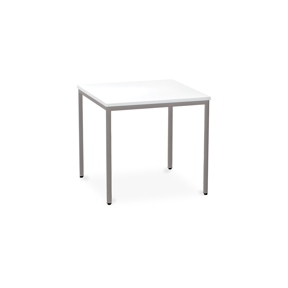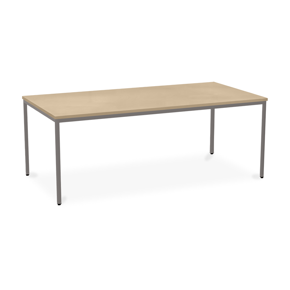 Der TÜV-geprüfte Besprechungstisch (Zertifikat Nr. S 60183846) Weißaluminium (RAL 9006) kombiniert robuste Konstruktion mit ansprechendem Design. Die 25 mm starke Tischplatte mit 2 mm Kantenumleimer ist kratzfest und widerstandsfähig.