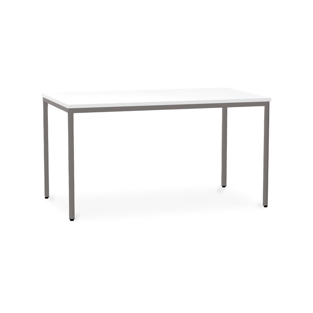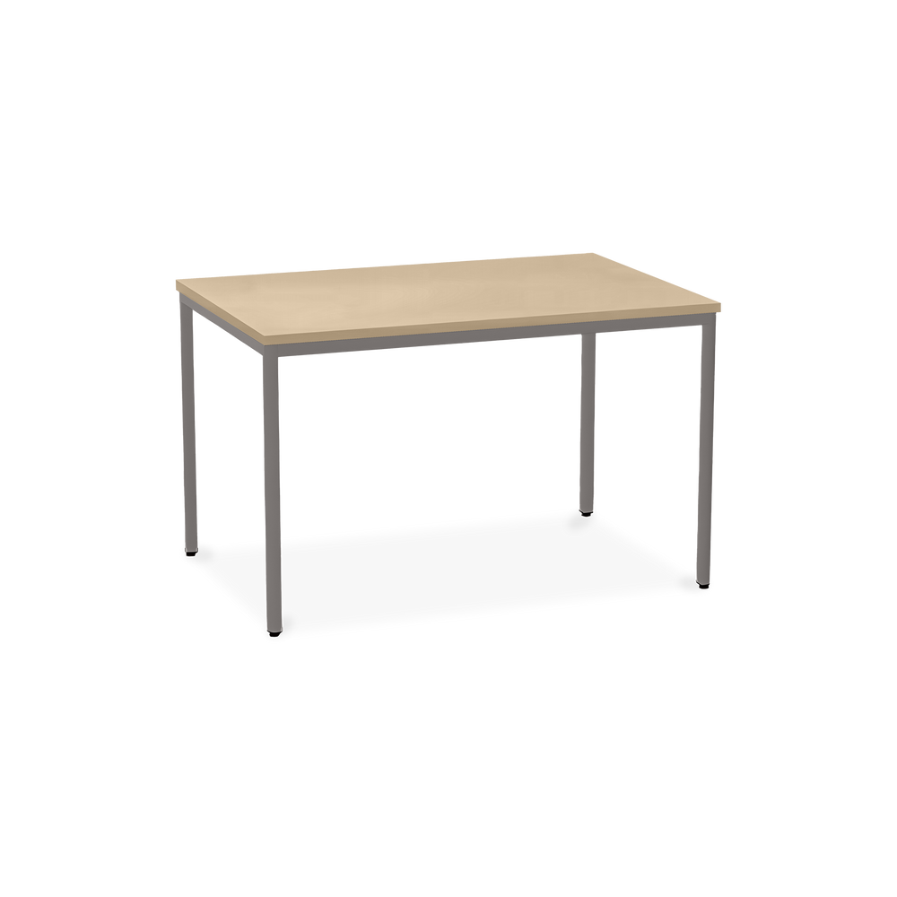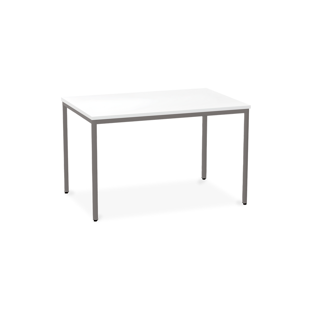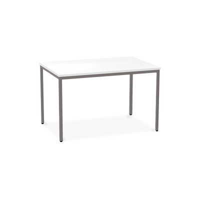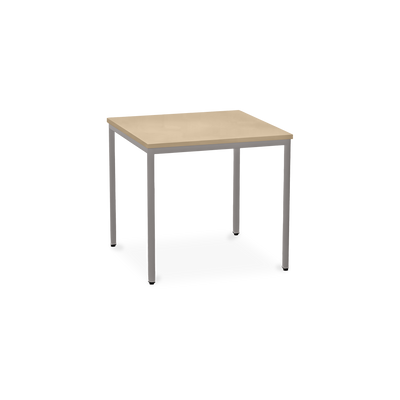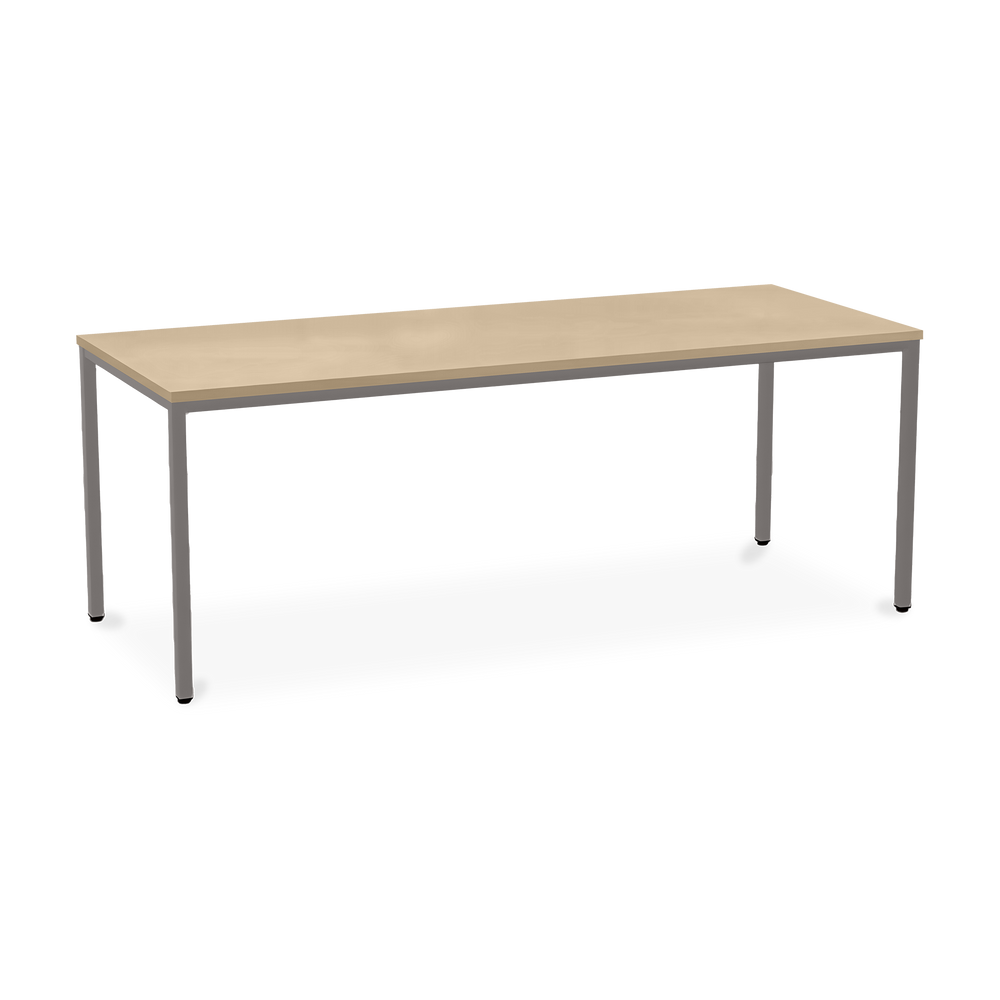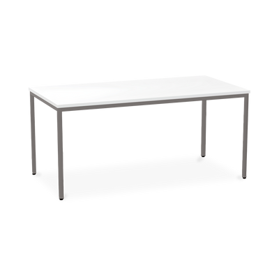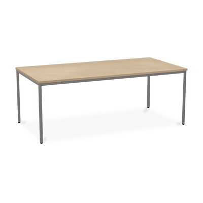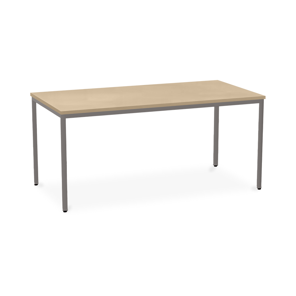 Der TÜV-geprüfte Besprechungstisch (Zertifikat Nr. S 60183846) Weißaluminium (RAL 9006) kombiniert robuste Konstruktion mit ansprechendem Design. Die 25 mm starke Tischplatte mit 2 mm Kantenumleimer ist kratzfest und widerstandsfähig.