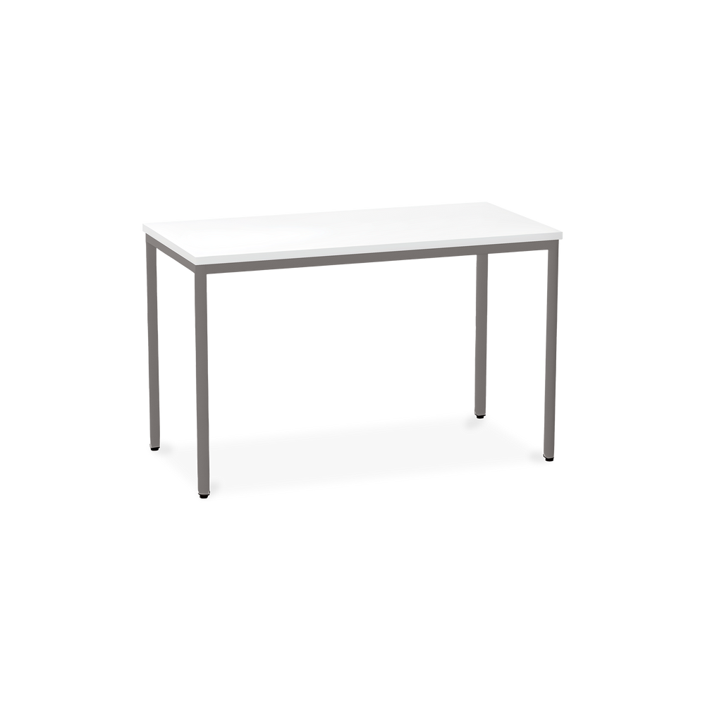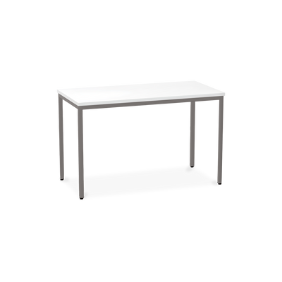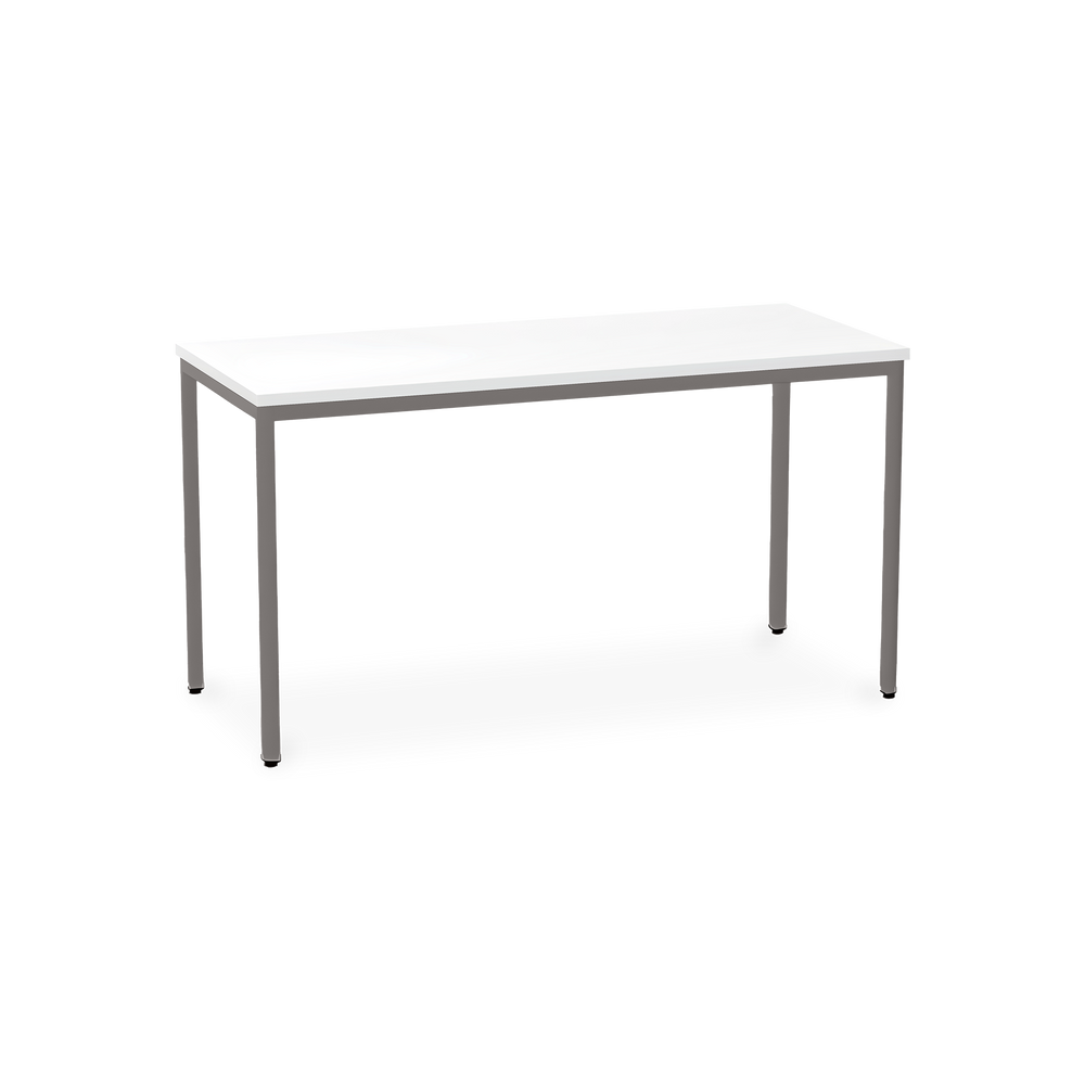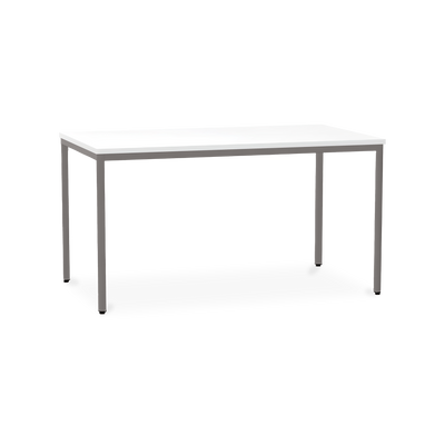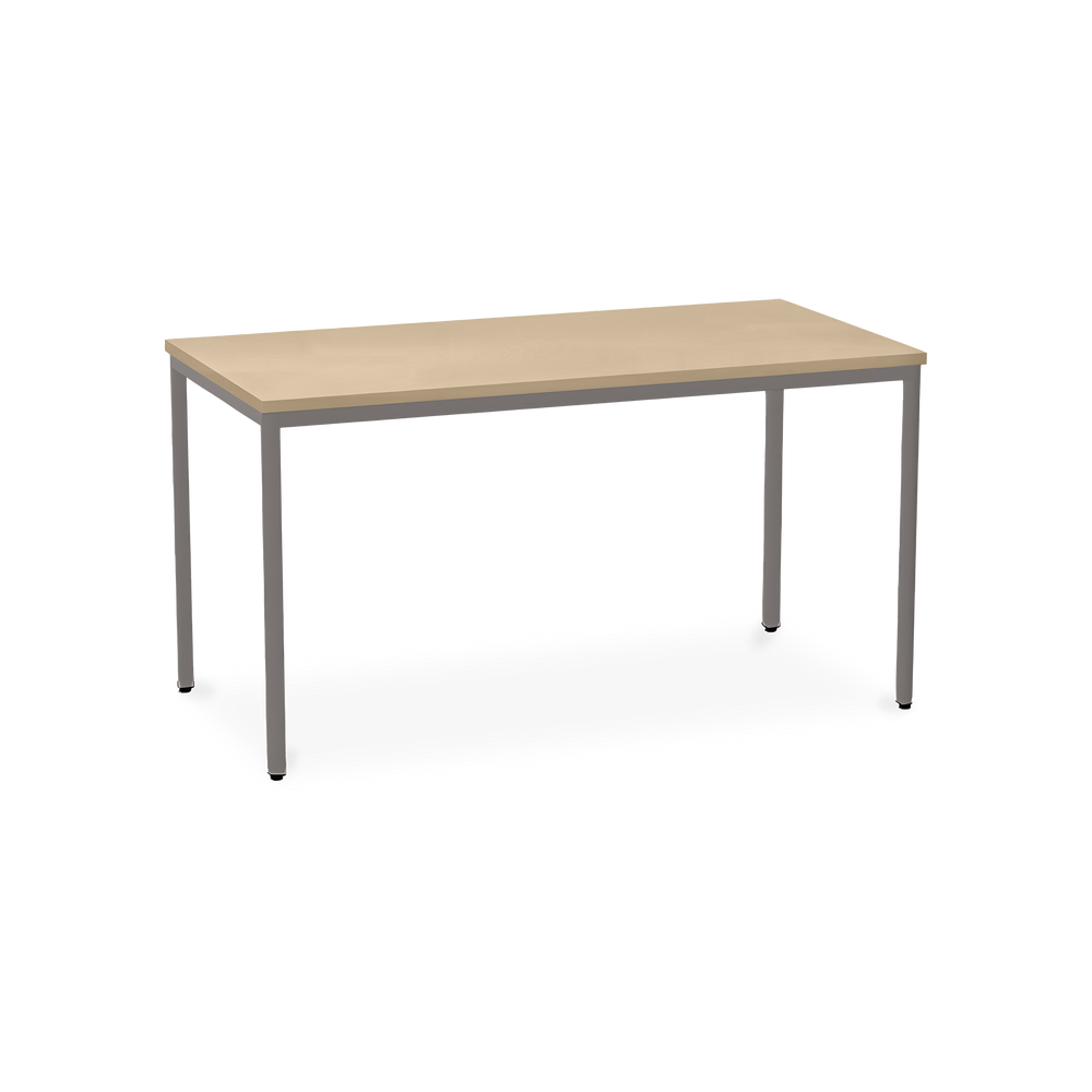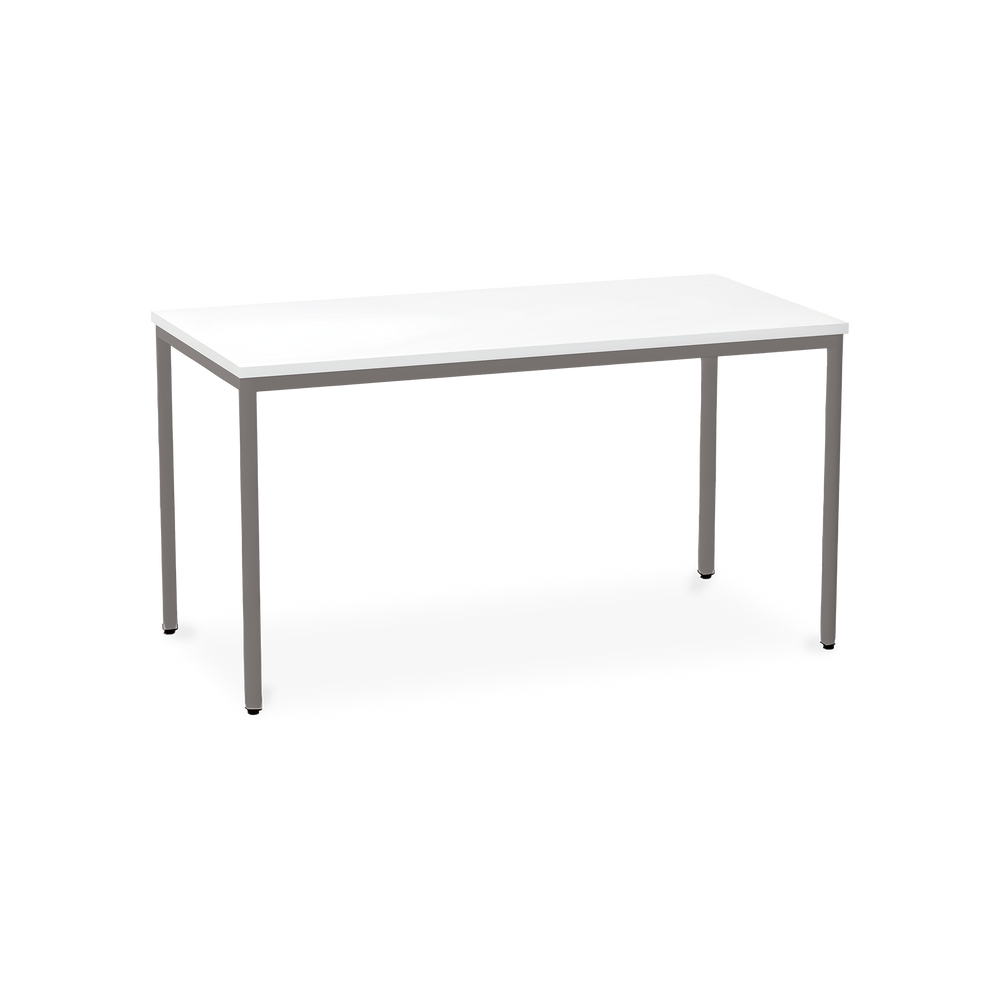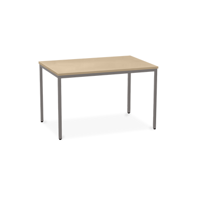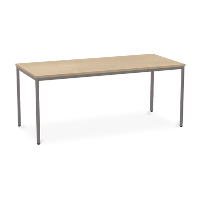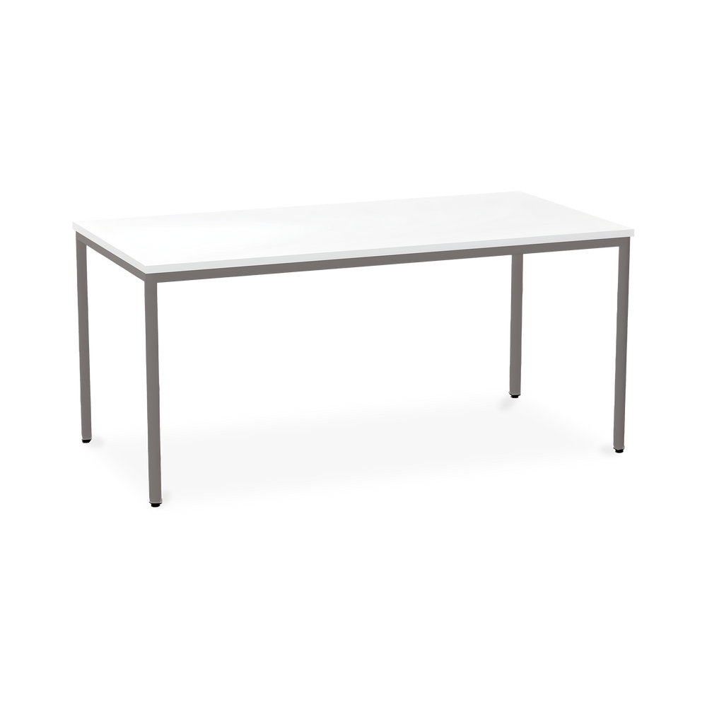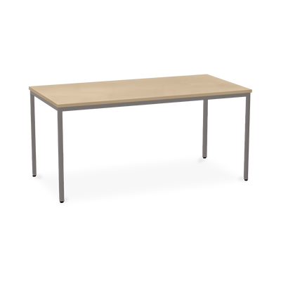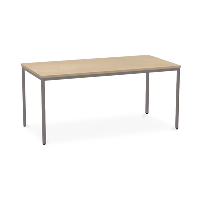 Der TÜV-geprüfte Besprechungstisch (Zertifikat Nr. S 60183846) Weißaluminium (RAL 9006) kombiniert robuste Konstruktion mit ansprechendem Design. Die 25 mm starke Tischplatte mit 2 mm Kantenumleimer ist kratzfest und widerstandsfähig.