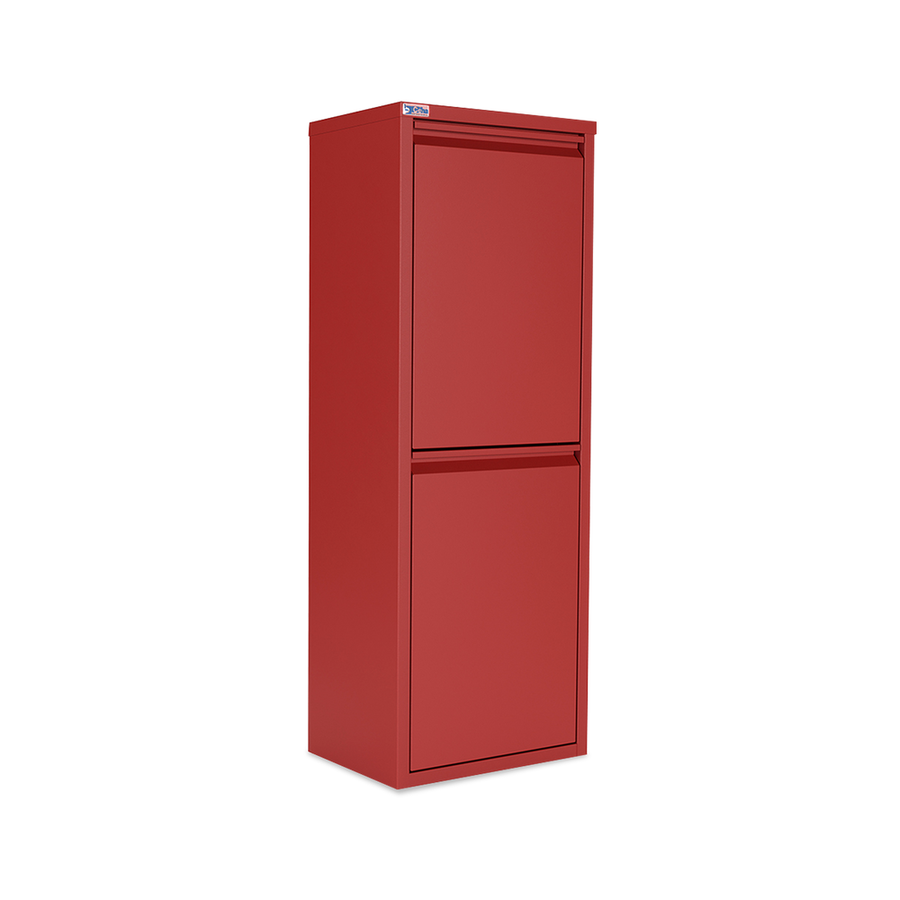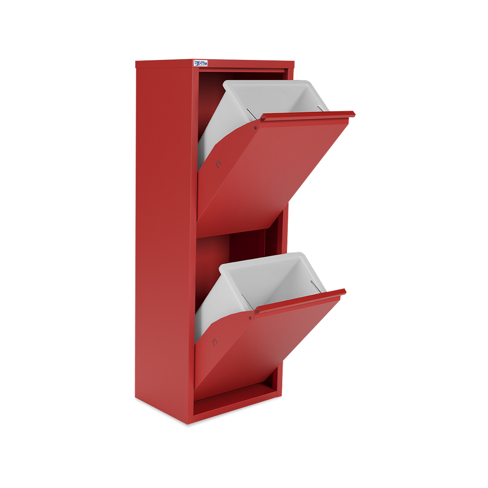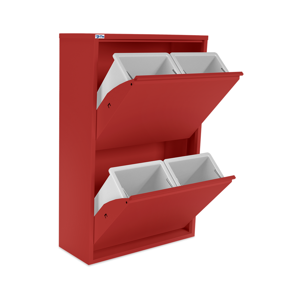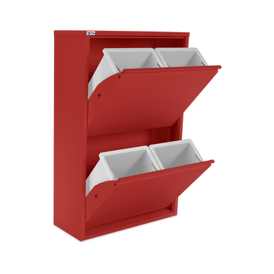 Der Mülltrenner aus Stahlblech in Feuerrot ist die ideale Lösung für eine effiziente und stilvolle Abfalltrennung. Der pulverbeschichtete Korpus ist robust und langlebig, während die Inneneimer aus Kunststoff leicht zu reinigen sind.