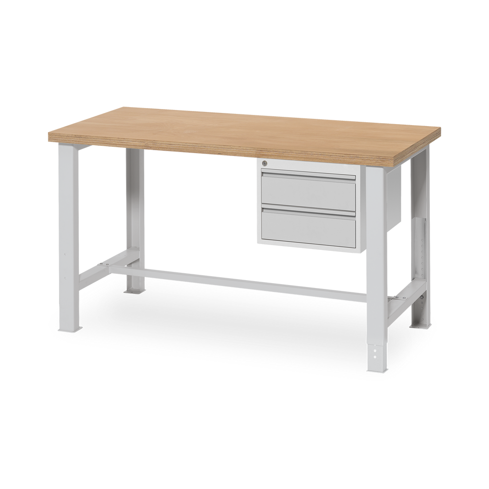 Diese Werkbank ist die ideale Lösung für Handwerk und Industrie und kombiniert eine robuste Bauweise mit hoher Funktionalität. Die 40 mm starke, massive Buchenplatte bietet eine widerstandsfähige Arbeitsfläche für anspruchsvolle Tätigkeiten.