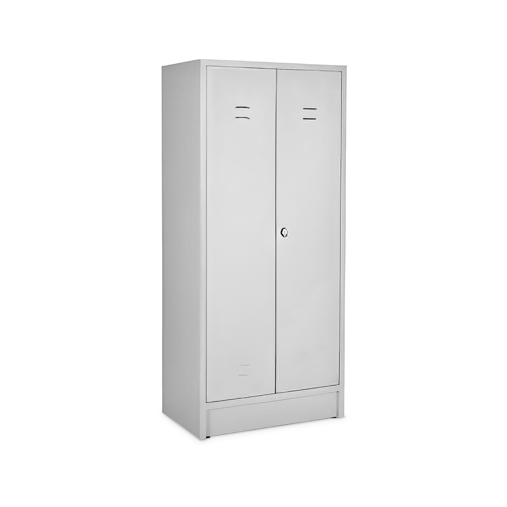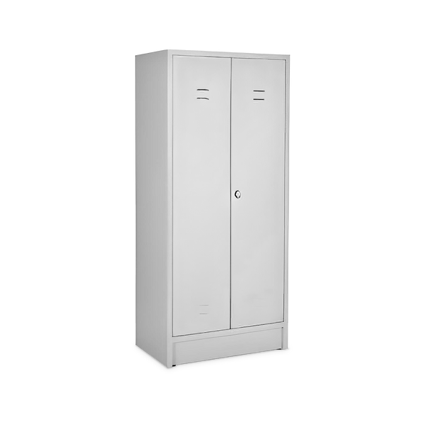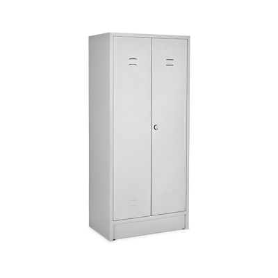 Der Putzmittelspind in Lichtgrau (RAL 7035) bietet eine sichere und stabile Aufbewahrungslösung für Reinigungsmittel und -utensilien. Der verschweißte Korpus gewährleistet hohe Standfestigkeit.