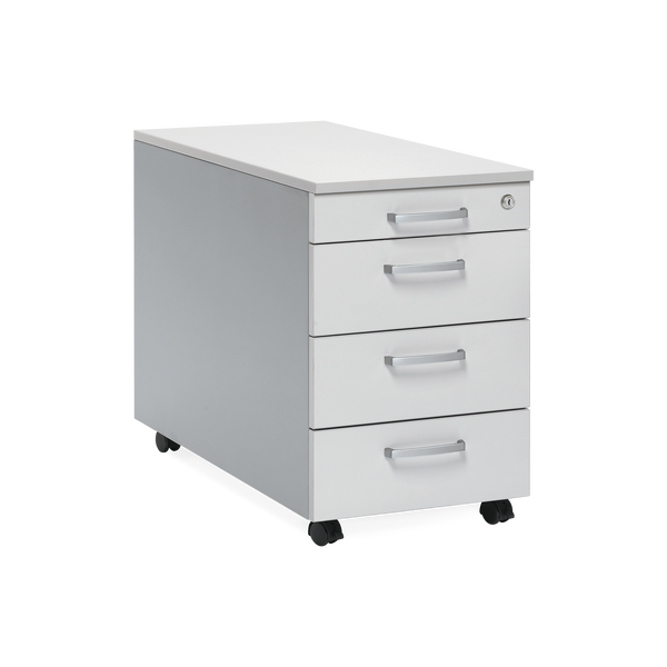 Vier leichtgängige Zwillingsrollen, zwei davon gebremst, ermöglichen ein einfaches Verschieben und Positionieren des Rollcontainers. Mit einer Tiefe von 790 mm bietet er großzügigen Stauraum für Ihre Unterlagen, Ordner und Bürobedarf.