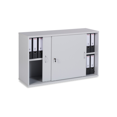 Der Schiebetürenschrank aus Holz bietet eine stabile und elegante Aufbewahrungslösung. Die 8 mm starke Sichtrückwand sorgt für eine offene Optik, während die 18 mm starken Seitenwände und Türfronten mit 2 mm Kantenumleimer für Robustheit und Langlebigkeit stehen.
