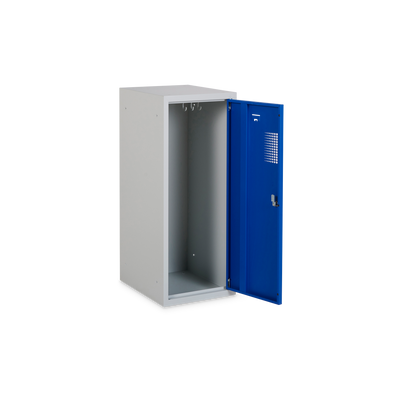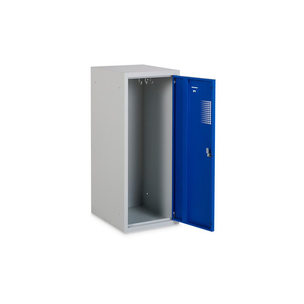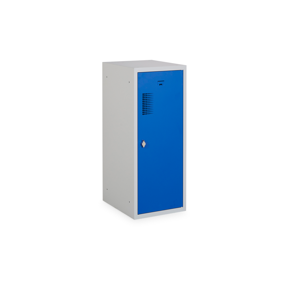 Schließfachspind "MINI" (400 mm) – Lichtgrau / Enzianblau