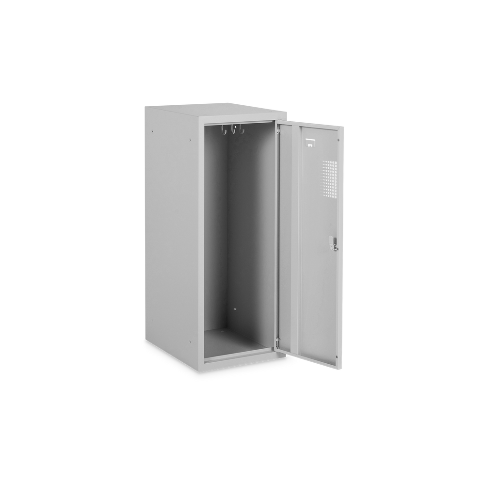 Jedes Abteil ist mit einer Kleiderstange ausgestattet. Die Türen verfügen über Lüftungsschlitze, einen Etikettenrahmen und einen Drehriegelverschluss, der die Verwendung eines Vorhängeschlosses ermöglicht.