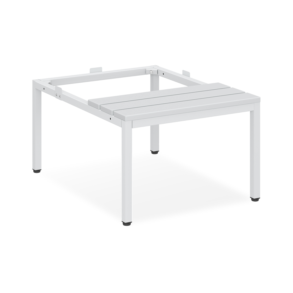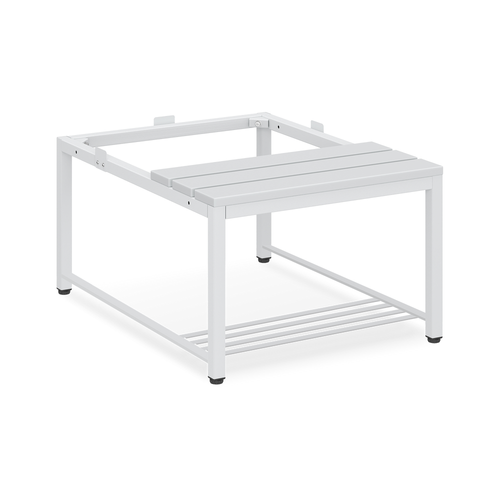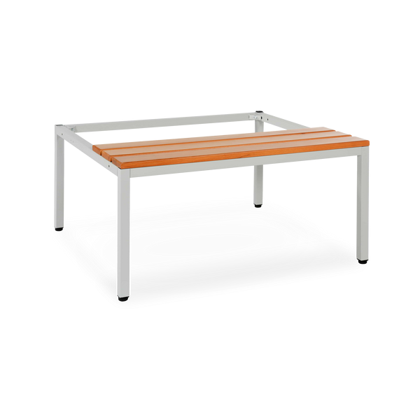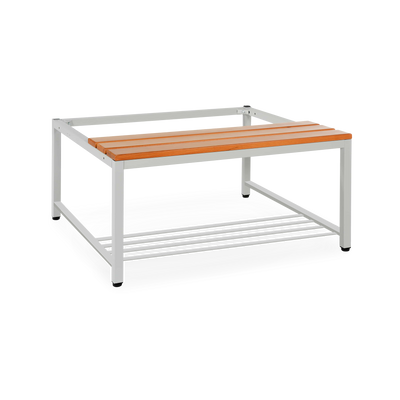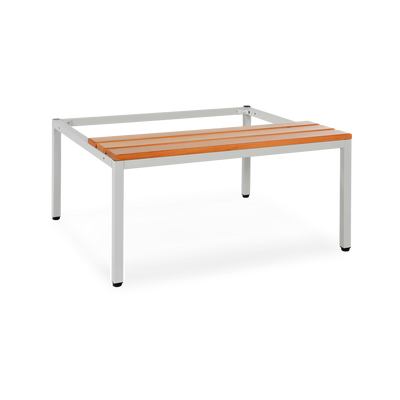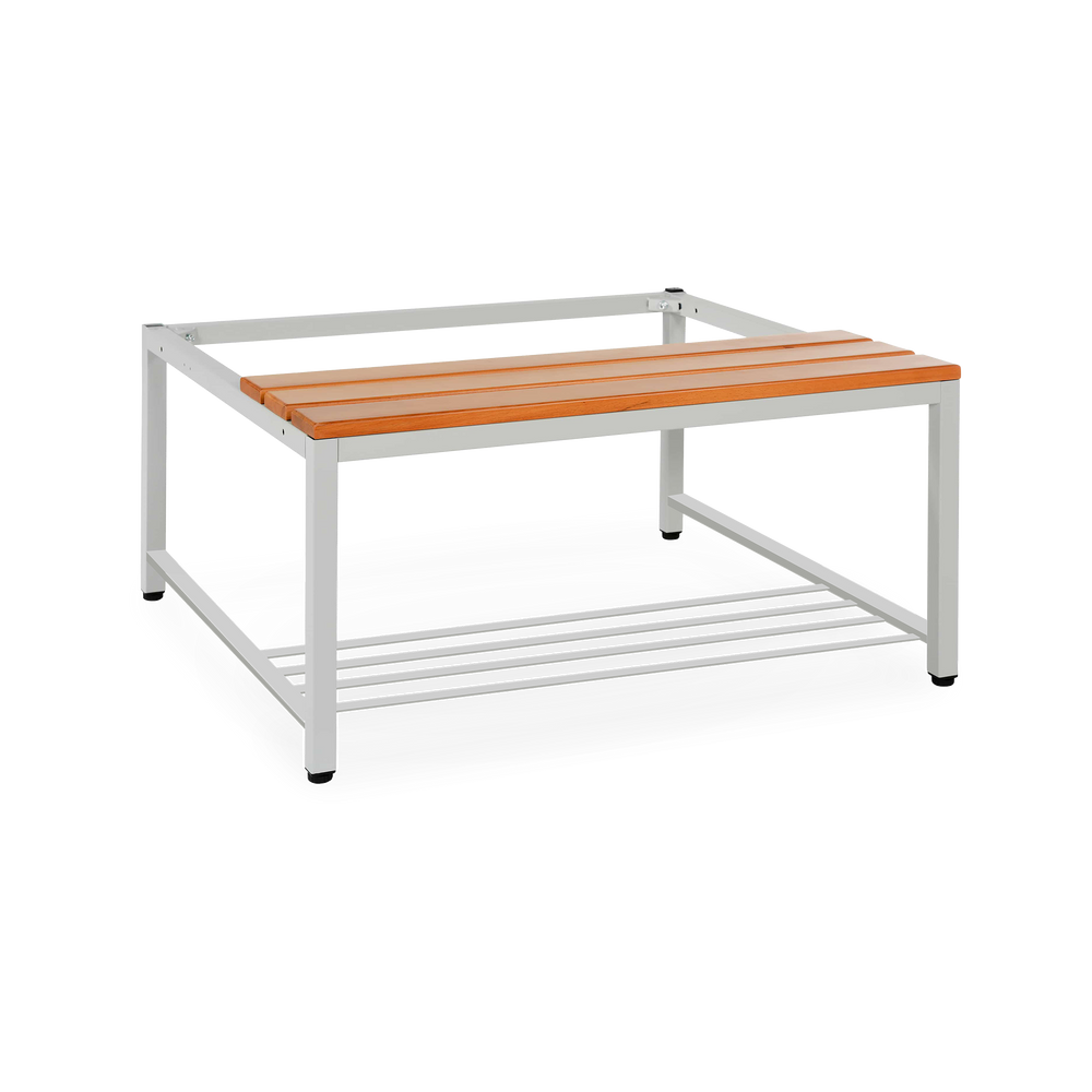 Das Sitzbank-Untergestell "Design" vervollständigt Ihre Design-Stahlspinde mit einer komfortablen Sitzgelegenheit. Das stabile Gestell aus 30 x 30 mm Vierkantrohr ist pulverbeschichtet in Lichtgrau (RAL 7035) und mit Bodenausgleichsfüßen ausgestattet – Alternativ ist das Untergestell auch in Kunststoff vorhanden. Die komfortablen Sitzleisten aus Holz bieten eine angenehme Sitzfläche.