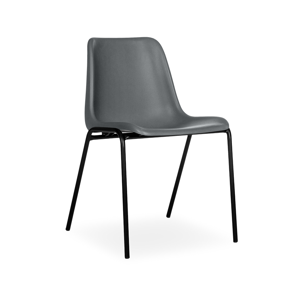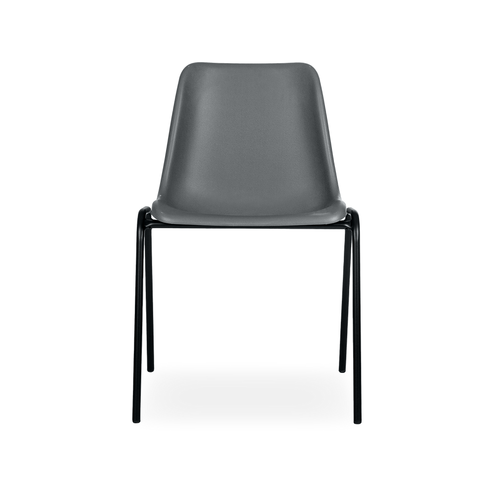 Die Schale ist pflegeleicht und widerstandsfähig gegenüber alltäglicher Beanspruchung. Das stabile Gestell besteht aus schwarzem Rundrohr mit einem Durchmesser von ca. 22 mm. Dank seiner Konstruktion ist der Stuhl stapelbar und ermöglicht somit eine platzsparende Lagerung bei Nichtgebrauch.