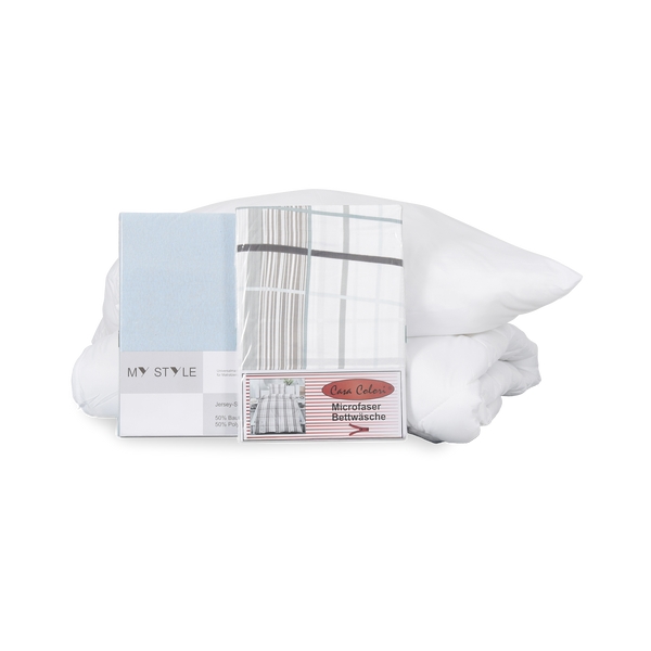Das Schlafgarnituren Komplett-Set bietet alles, was Sie für einen erholsamen Schlaf benötigen.
