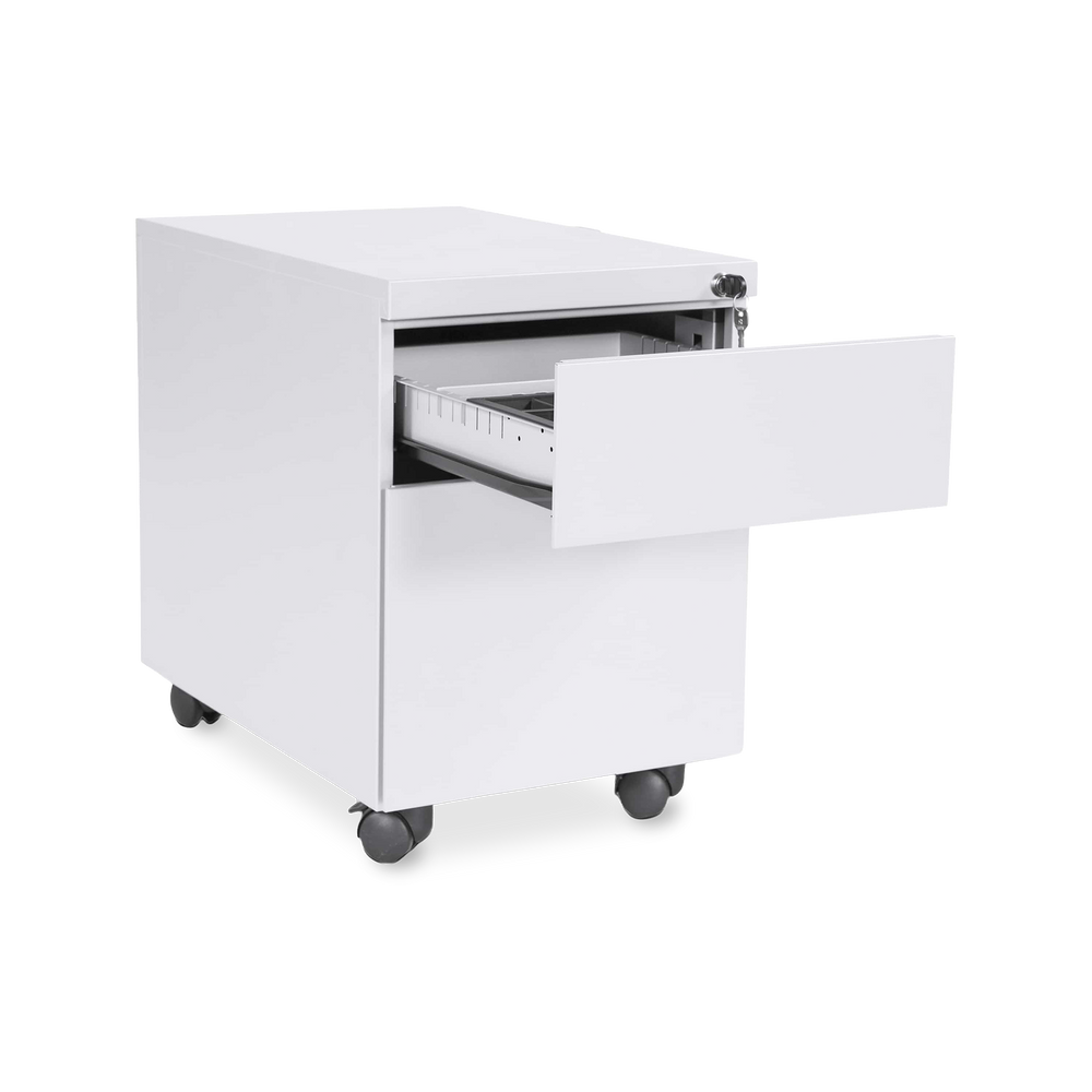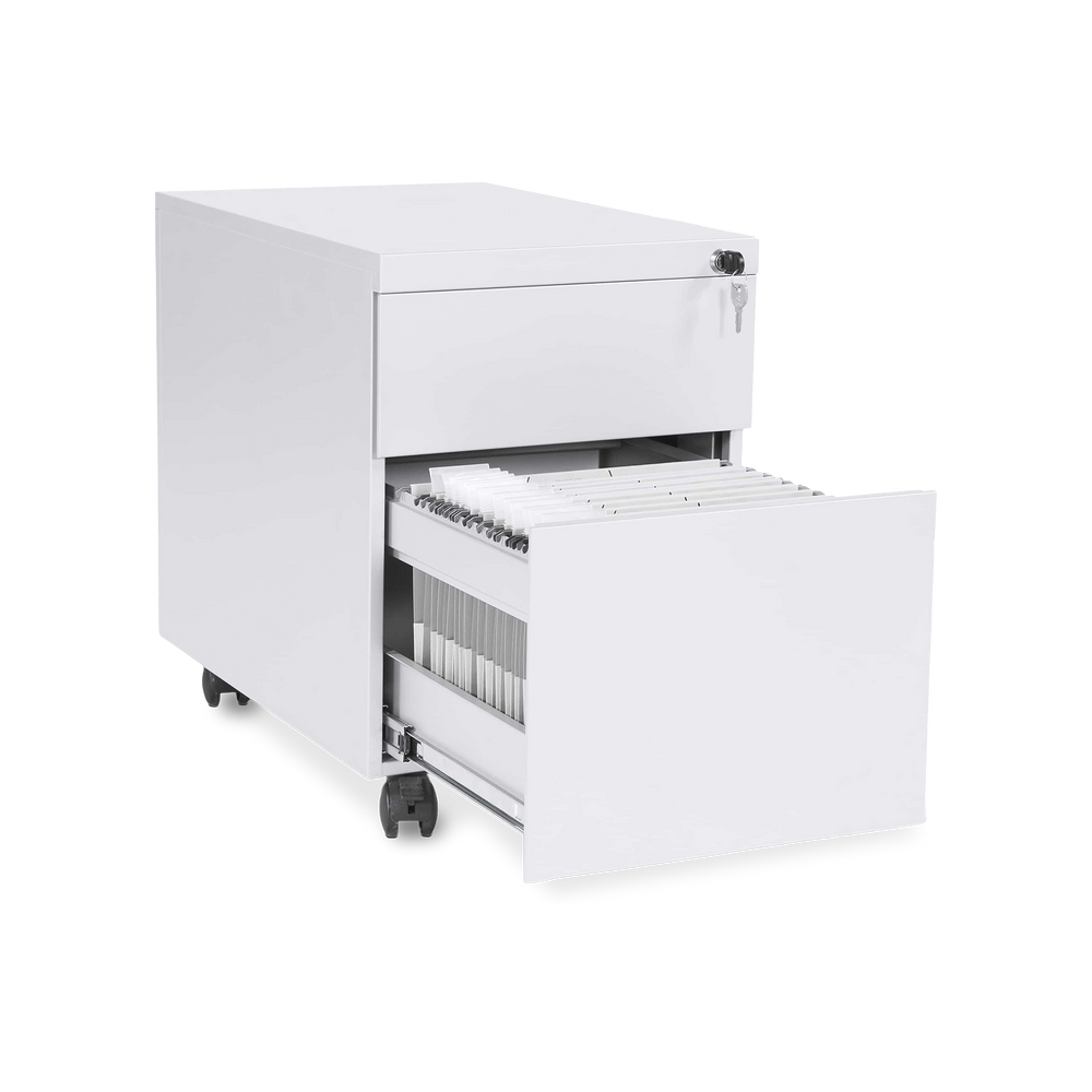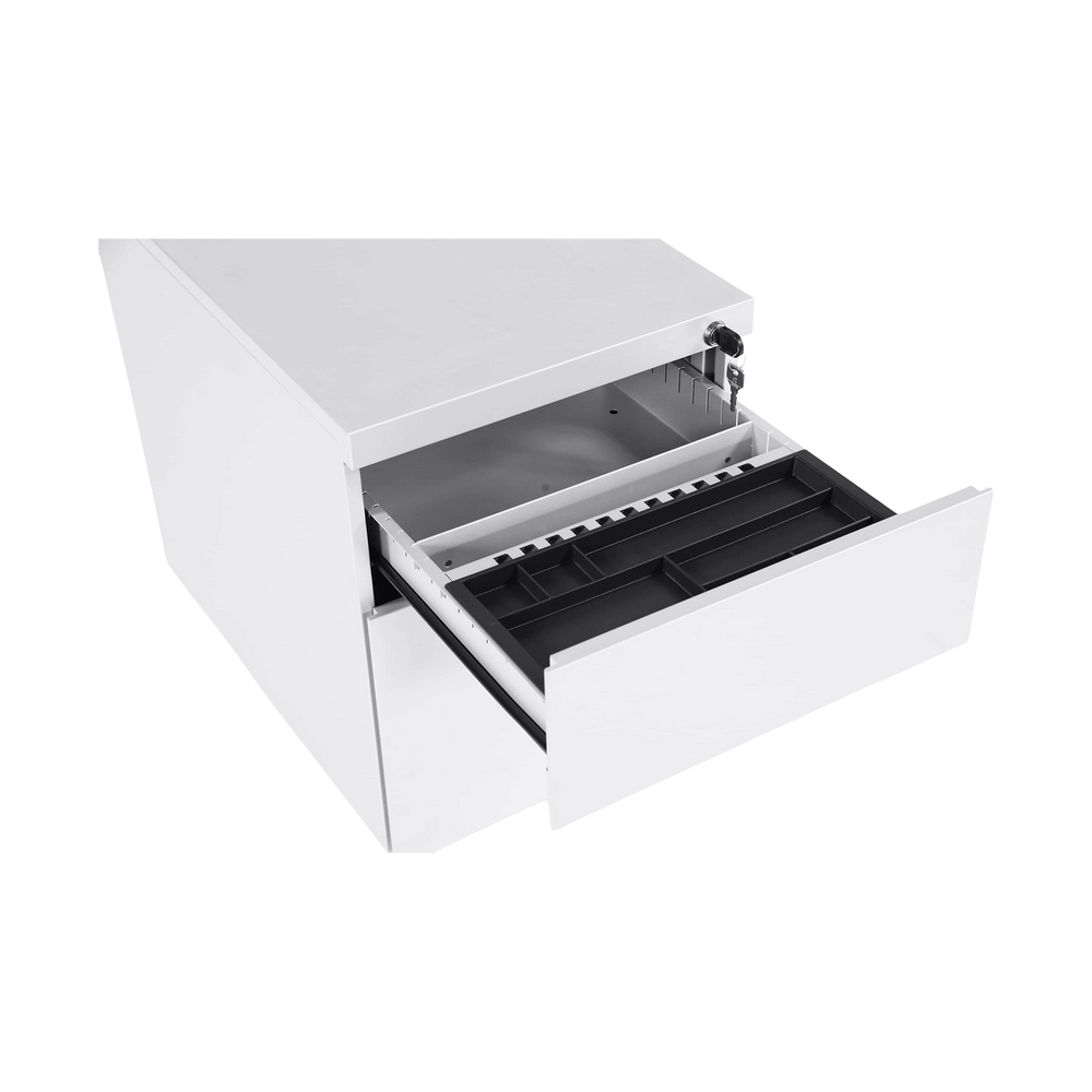Zubehör wie die integrierte Materialschale, Schubladenunterteiler und der Hängeregisterauszug (nur bei zwei Schüben) sorgen für eine optimale Organisation Ihrer Arbeitsmaterialien.