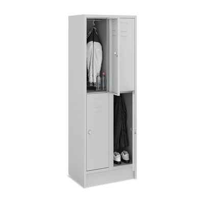 Fächerschrank (2 Abteile je 2 Fächer) 350 mm Abteilbreite – Korpus Lichtgrau