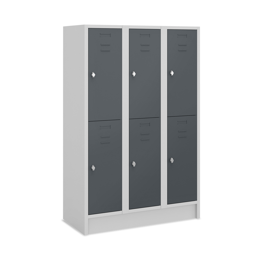 Fächerschrank (3 Abteile je 2 Fächer) 400 mm Abteilbreite – Korpus Lichtgrau