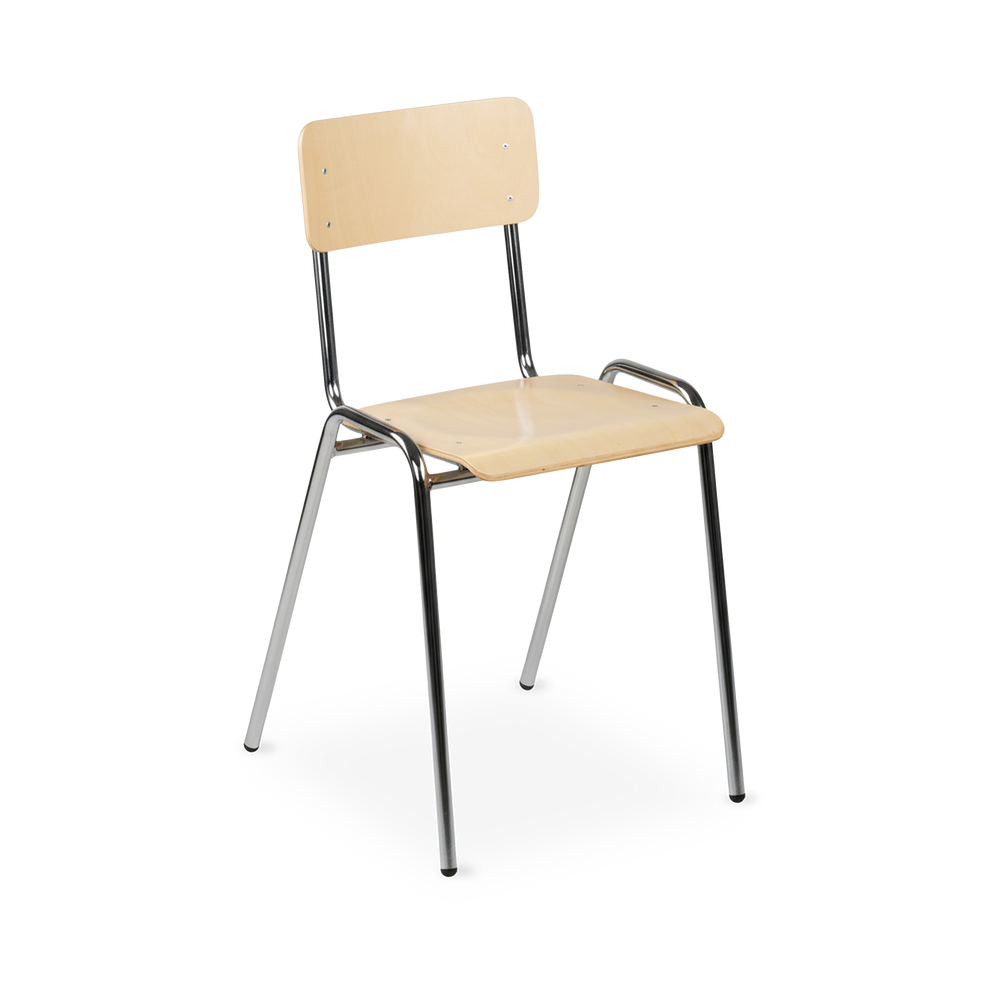 Dieser Stapelstuhl ist ein robuster und langlebiger Klassiker, der sich durch sein 22 mm starkes Rundrohrgestell in Chrom auszeichnet. Sitz und Rückenlehne bestehen aus mehrfach verleimtem Sperrholz und bieten angenehmen Sitzkomfort (370 mm breite).