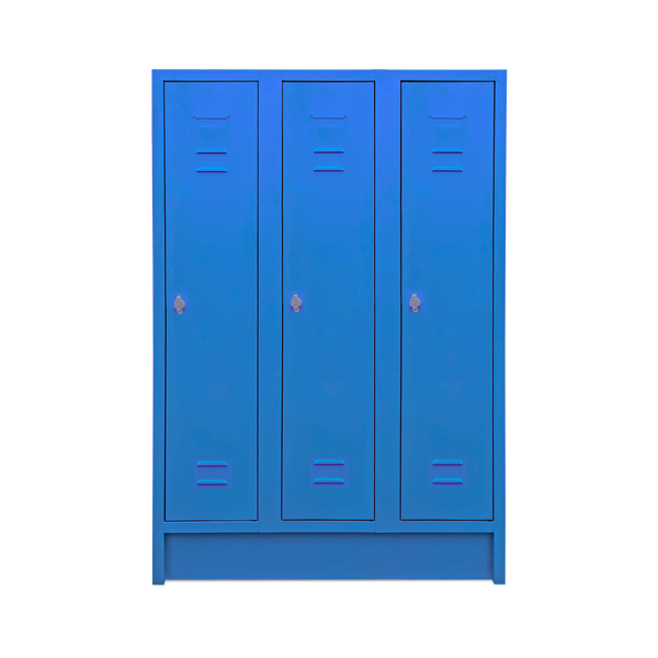 Der bunte Kindergartenspind (Druchgängige Abteile) mit 3 Abteilen bietet eine praktische und sichere Aufbewahrungslösung, ideal für Kindergärten und andere Einrichtungen. Jedes Abteil ist 300 mm breit und ausgestattet mit einer Kleiderstange und zwei Haken. So finden Kleidung und persönliche Gegenstände ausreichend Platz.
