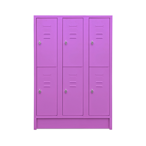 Der bunte Fächerspind (Kindergartenspind) mit insgesamt 6 Fächern eine praktische und sichere Aufbewahrungslösung, ideal für Kindergärten und andere Einrichtungen. Jedes Abteil ist 300 mm breit und ausgestattet mit einer Kleiderstange und zwei Haken. So finden Kleidung und persönliche Gegenstände ausreichend Platz.