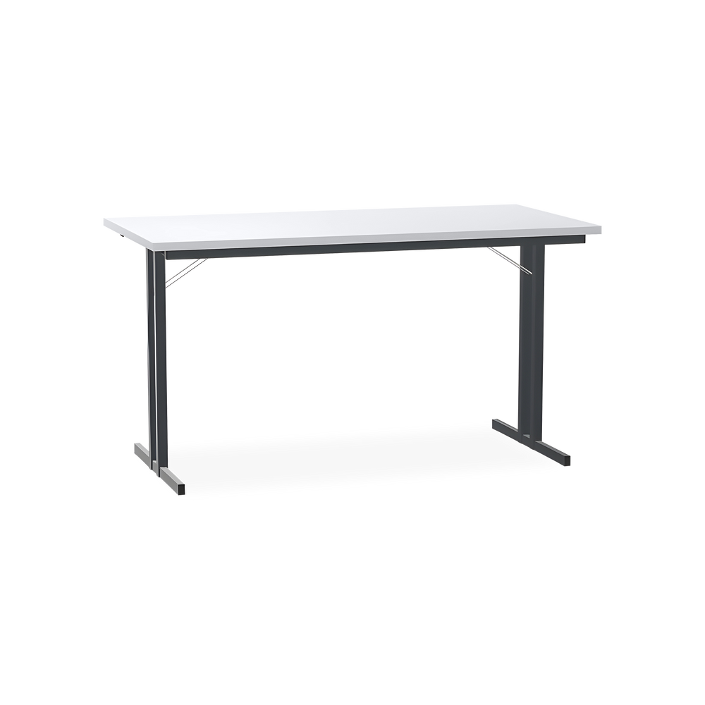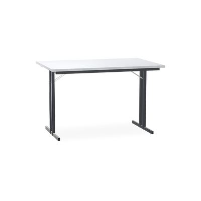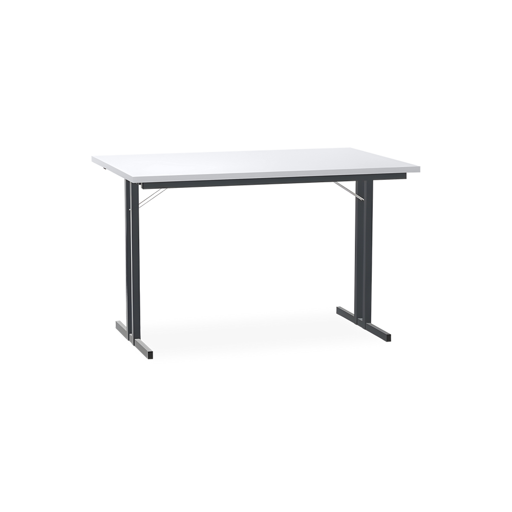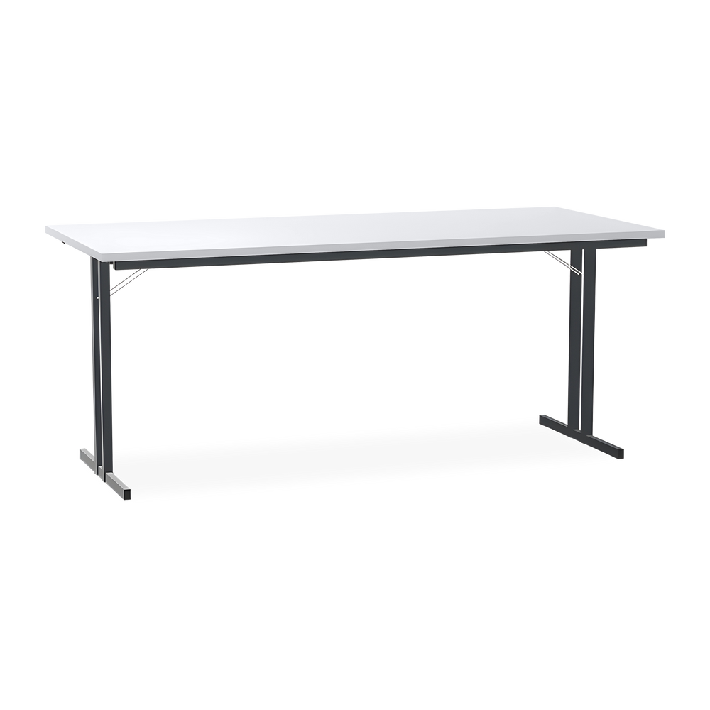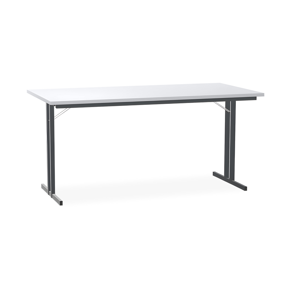 Der Klapptisch mit T-Fuß Gestell in Schwarzgrau (RAL 7021) ist die ideale Lösung für flexible Raumnutzung. Die 25 mm starke Tischplatte ist kratzfest und lässt sich dank der Klappmechanik einfach und schnell zusammenklappen.