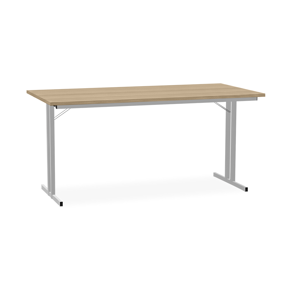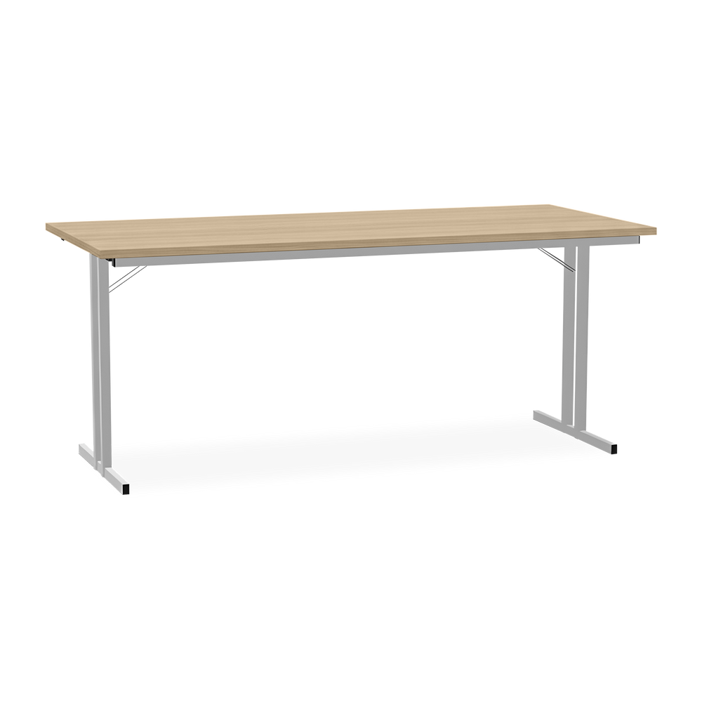 Der Klapptisch mit T-Fuß Gestell in Weißaluminium (RAL 9006) ist die ideale Lösung für flexible Raumnutzung. Die 25 mm starke Tischplatte ist kratzfest und lässt sich dank der Klappmechanik einfach und schnell zusammenklappen.