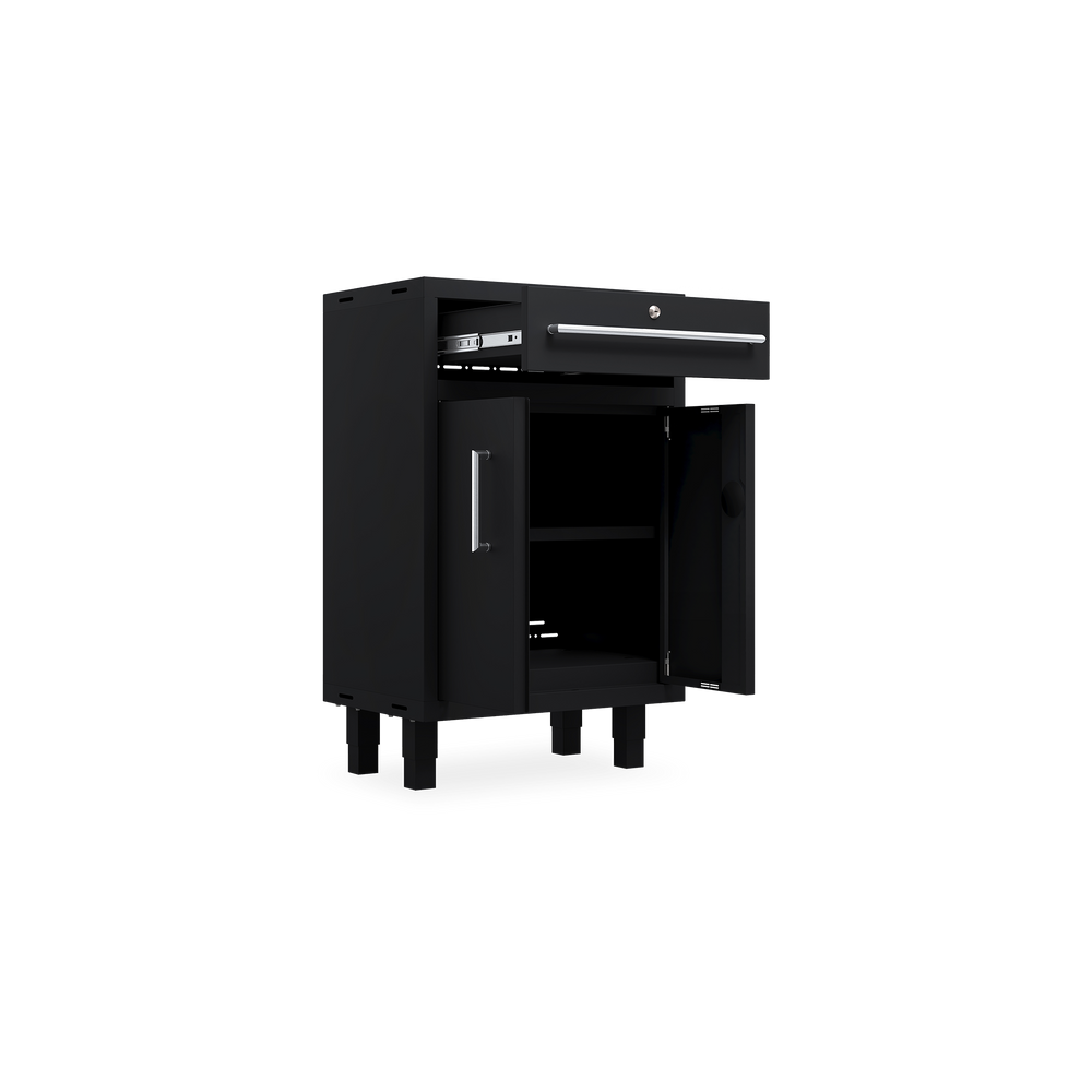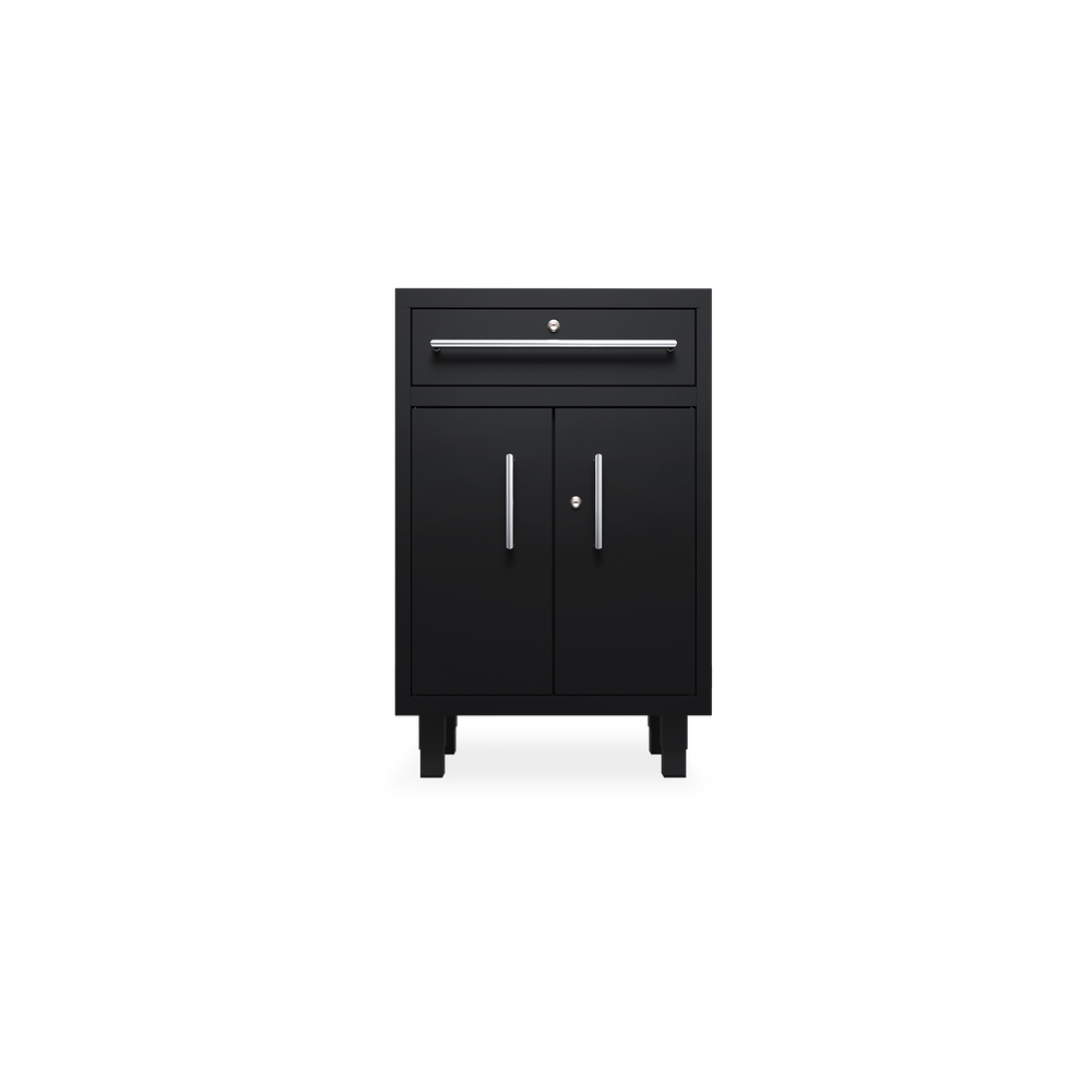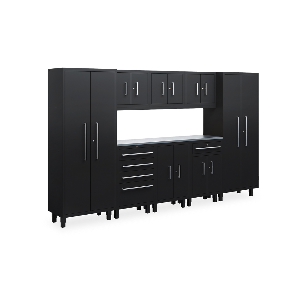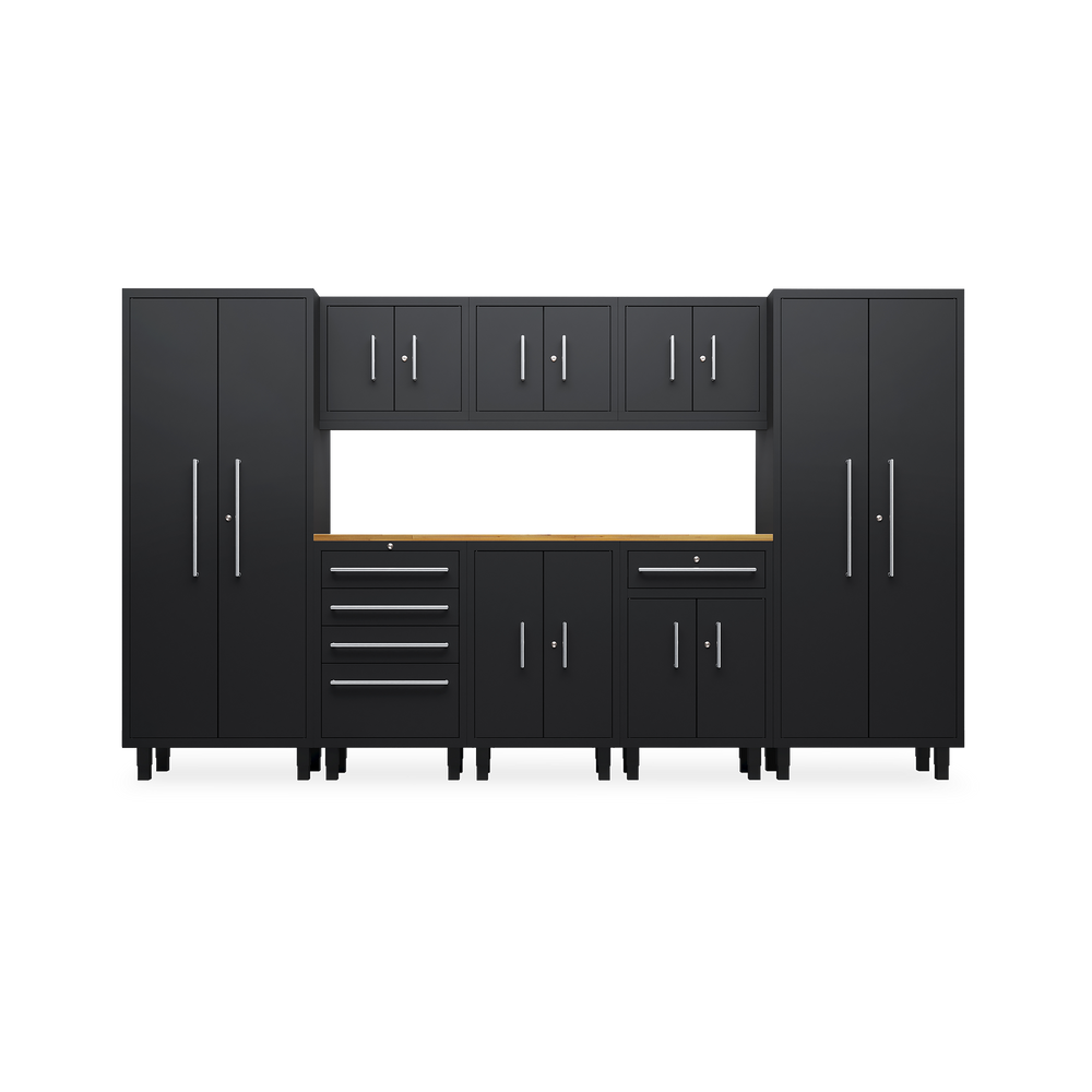 Das Essential-Set 9 ist eine umfassende Lösung für die organisierte Werkstatt und umfasst sechs hochwertige Möbelstücke: zwei Werkstattschränke (915 mm), drei Hängeschränke, einen Schubladenschrank und einen Unterschrank. Alle Elemente sind in elegantem Tiefschwarz (RAL 9005) gehalten und fügen sich optisch harmonisch in jede Arbeitsumgebung ein.