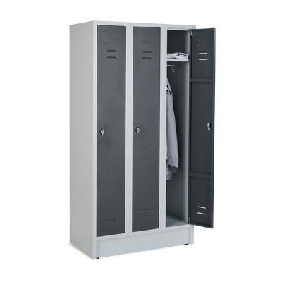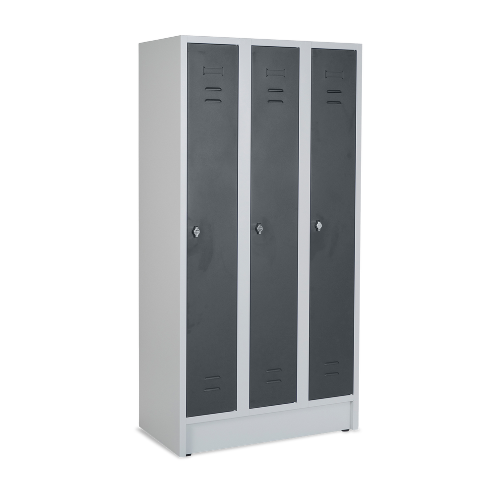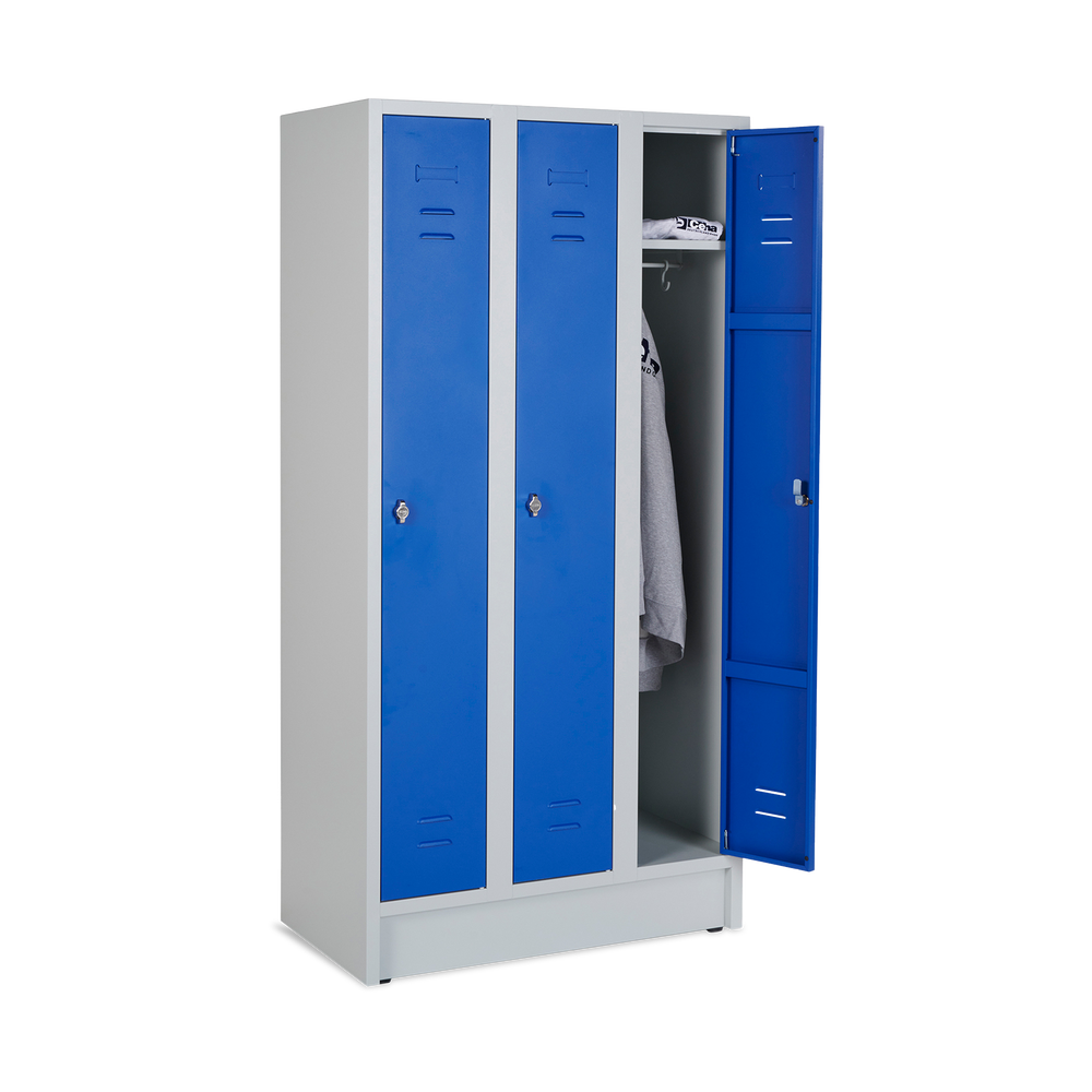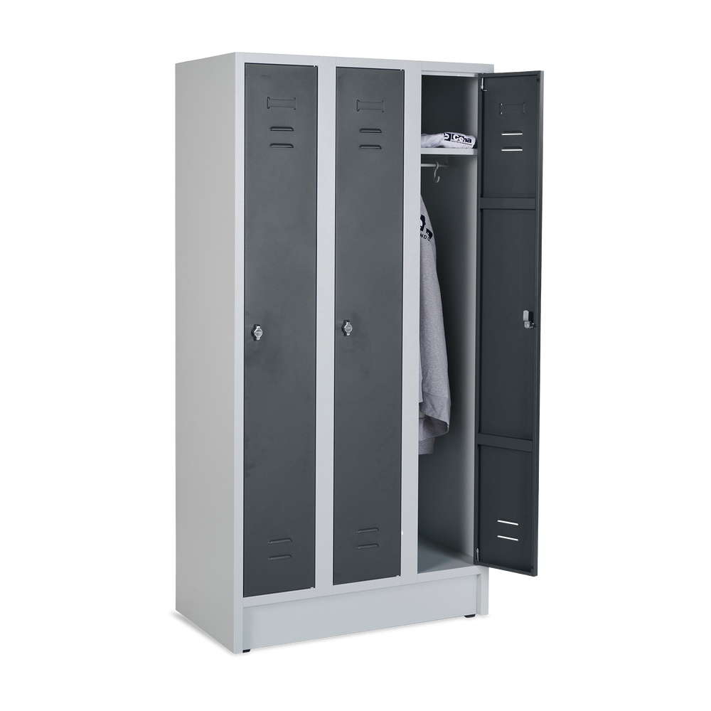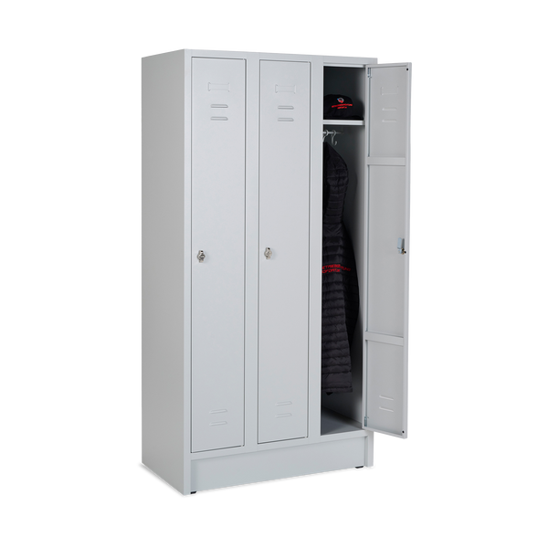 Umkleidespinde (3-Abteile) 900 mm Breite – Korpus in Lichtgrau