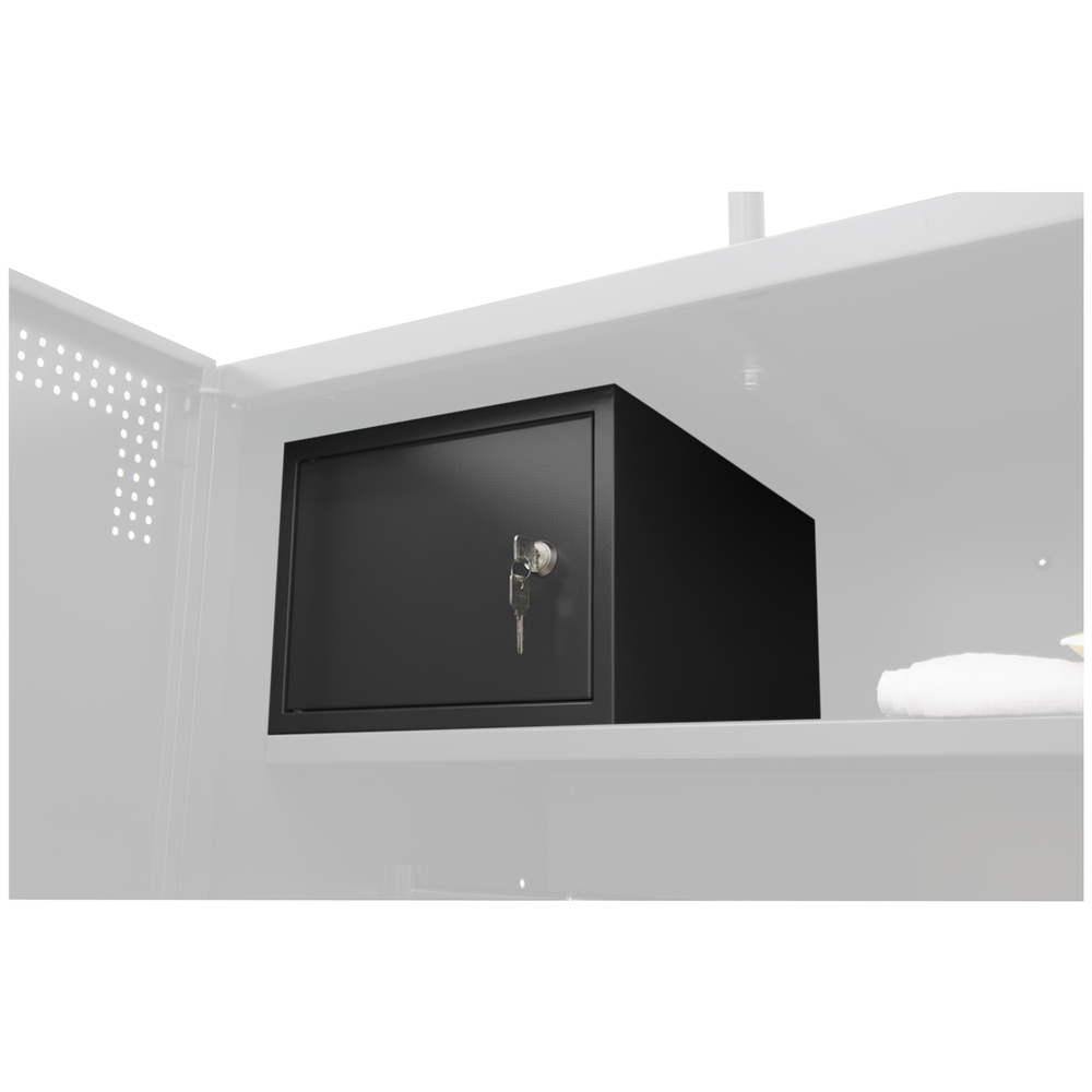 Das Wertfach für Metallspind mit Sitzbank bietet zusätzliche Sicherheit für Ihre Wertsachen. Es wird einfach im Inneren des Spinds montiert und ermöglicht die separate Aufbewahrung von Wertgegenständen wie Geldbörsen, Smartphones oder Schlüsseln. Das Wertfach ist aus robustem Stahlblech gefertigt und mit einem Zylinderschloss ausgestattet, das für optimalen Schutz sorgt.